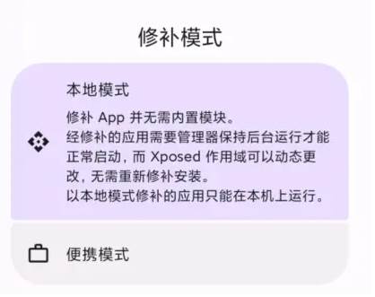 便携模式:修补App并内置模块。优点:经修补的应用可以在没有管理器的情况下运行缺点:Xposed作用域不能动态管理配置