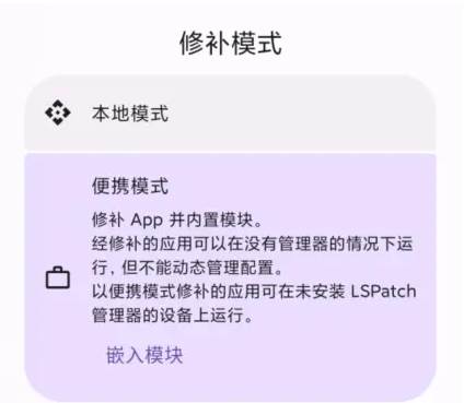 LsPatch 提供了 2 种应用修补模式本地模式:修补App并无需内置模块。优点:Xposed作用域可以动态更改,无需重新修补安装缺点:经修补的应用需要管理器保持后台运行才能正常启动注意:以本地模式修补的应用只能在本机上运行