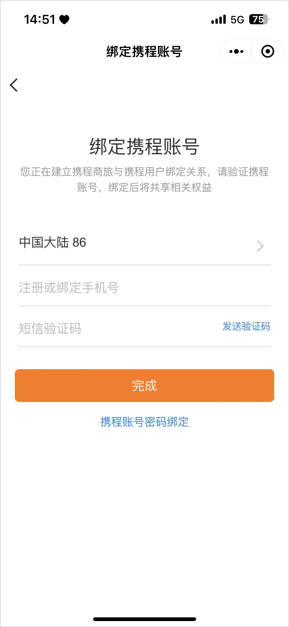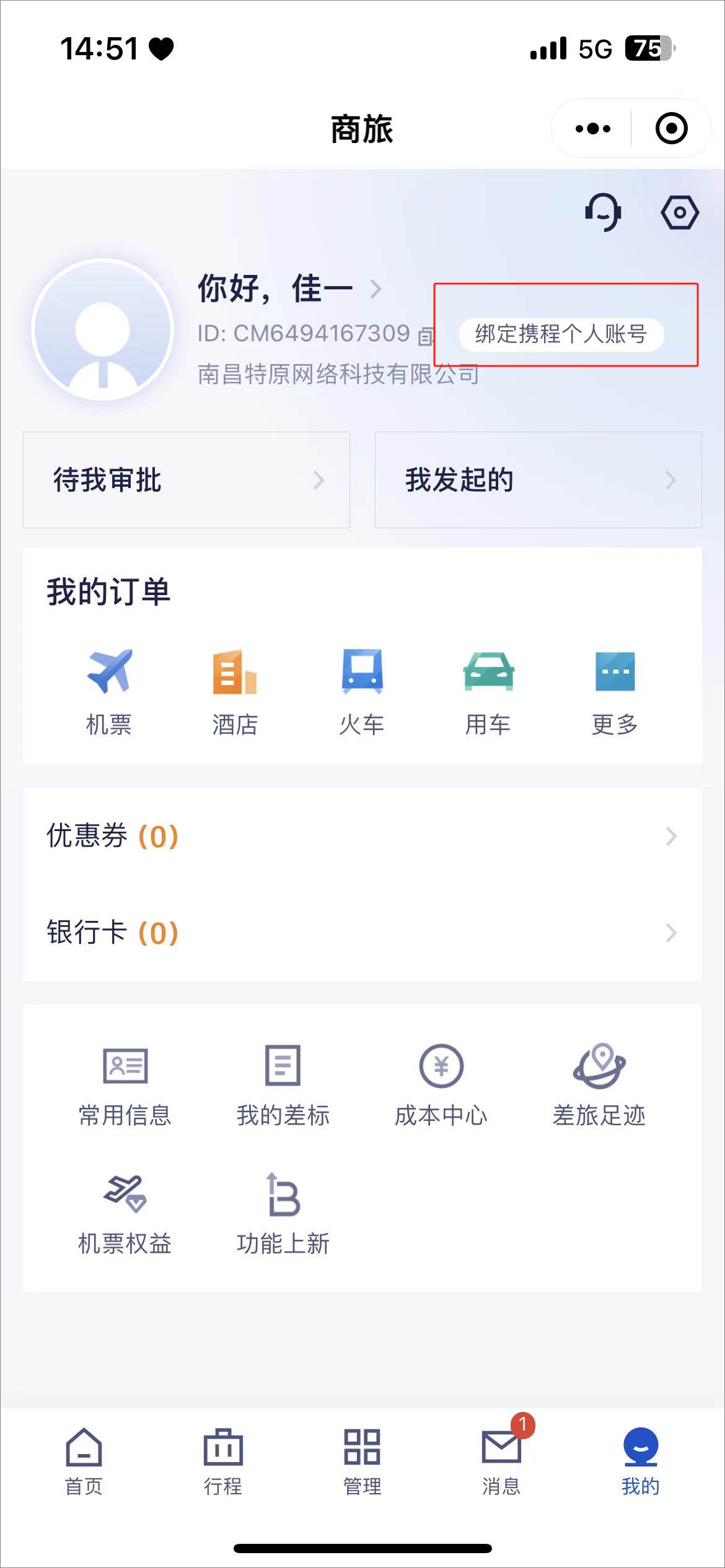 2、在“我的携程”页面中,找到并点击头像旁的“绑定携程账号”按钮。