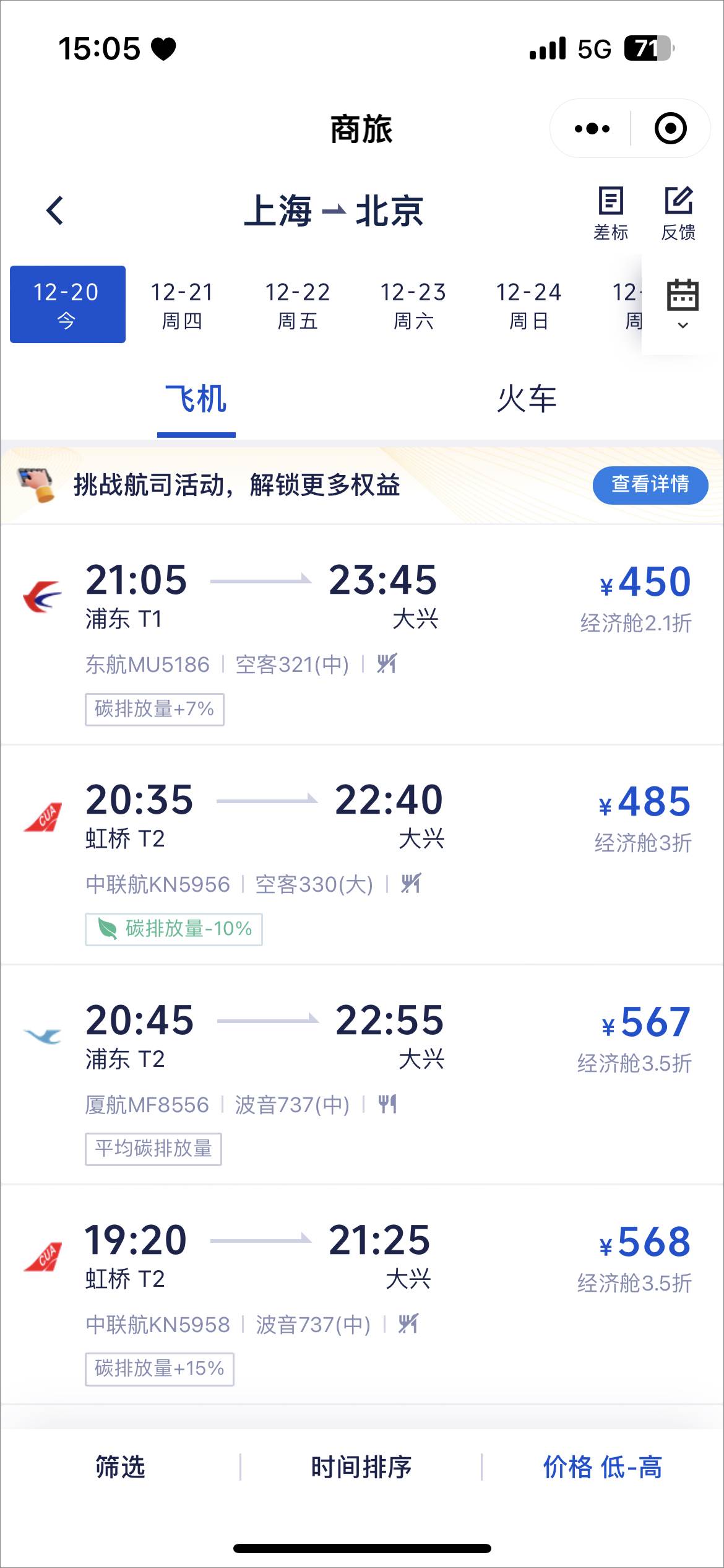 3、然后选择出行时间及航班;