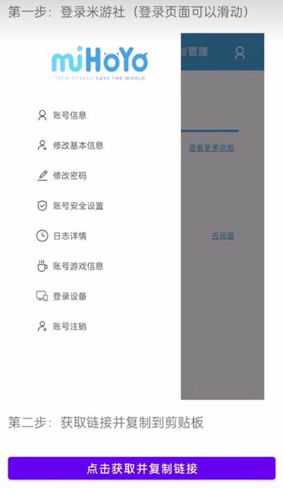3、选择好自己的想要测试的账号,获取链接并复制剪贴板。