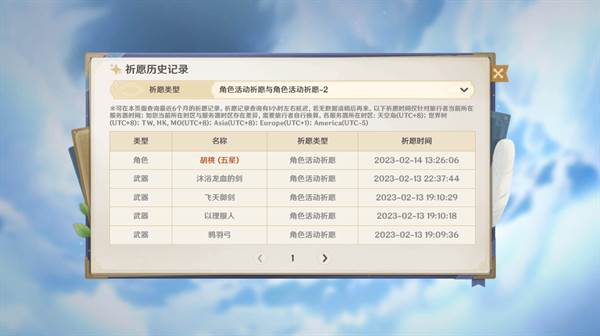 1、在原神PC端按下ESC-->祈愿-->历史记录,成功进入到如下页面(建议多翻几页)