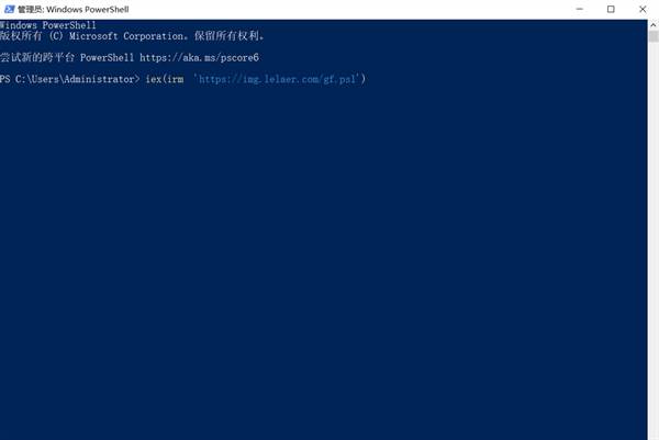 3、在弹出的程序框中再输入代码:iex(irm 'https://img.lelaer.com/cn.ps1'),然后点击回车“ENTER”,