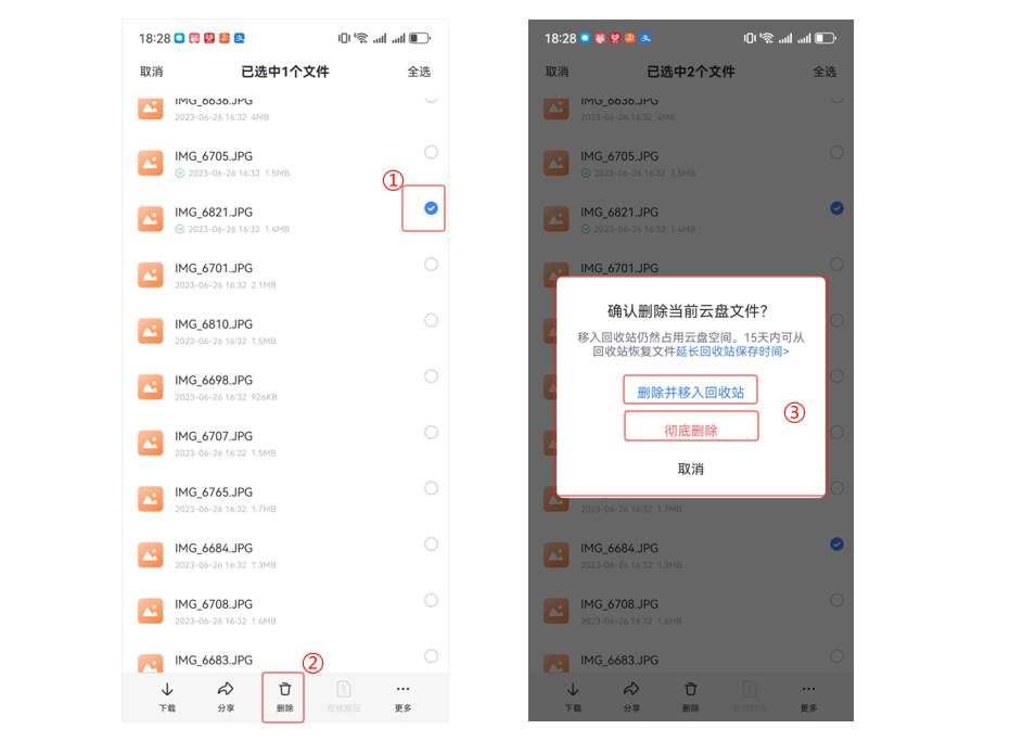 2、如已操作删除列表内文件,则无法恢复云盘列表展示
