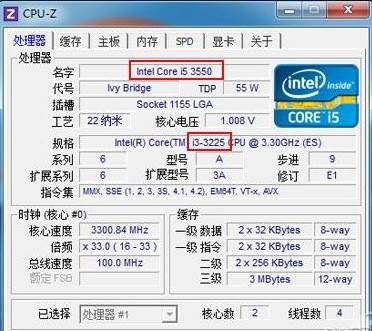 名字:里面红色圆圈位置代表CPU的型号,这里你识别错误是因为命名的原因;