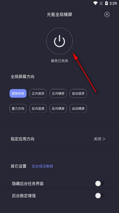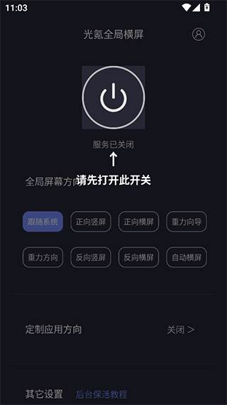 可以在首页选择“全局横屏”或“全局竖屏”,设备所有应用将强制切换至对应方向。