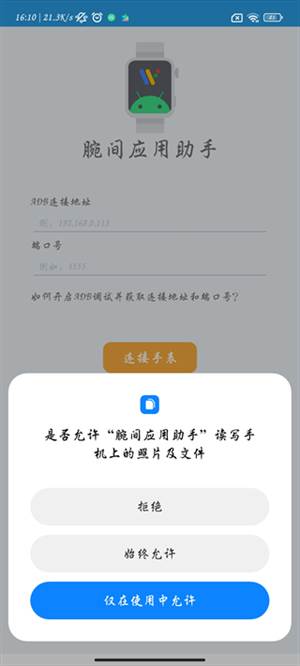 1、下载并安装腕间应用助手,授予软件读取文件权限。
