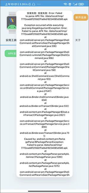 9、安卓11将目前无法使用手机建立热点来给手表安装软件,会提示安装失败(如下图)。可以换个路由器WIFI来安装。