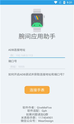 3、获取手表的ADB链接地址后,进入软件并填入,点击“连接手表”按钮。