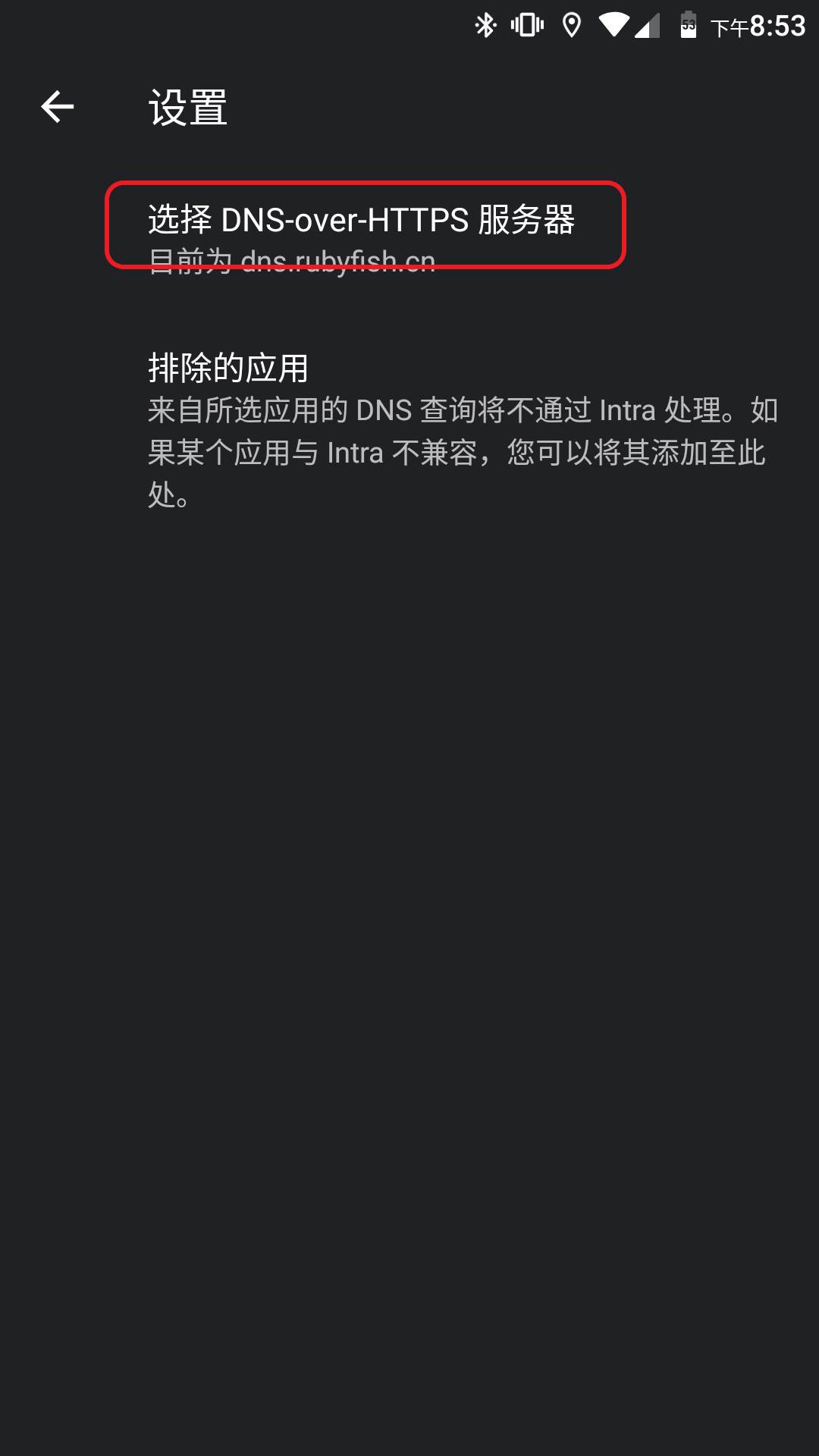 第二步:设置界面中点按 "选择 DNS-over-HTTPS 服务器"