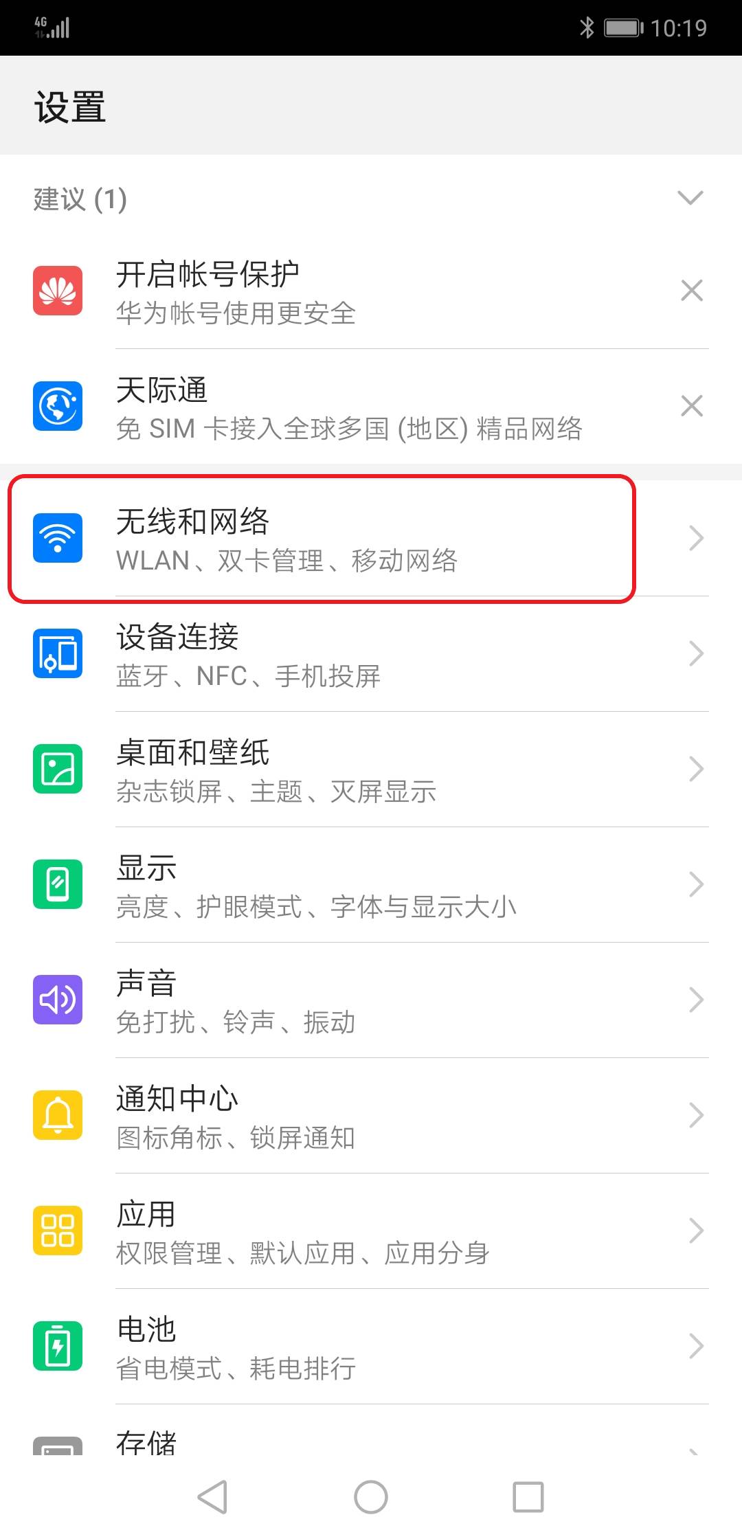 第一步:打开 "设置" 应用,点击 "无线和网络"