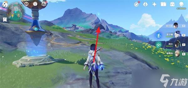 5、抵达传送锚点后,向东北方向走到悬崖边的大石块上。