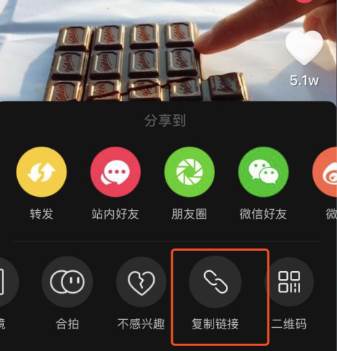 1、打开短视频APP,选择要下载的视频,点击分享按钮,在分享弹框中点击"复制链接"