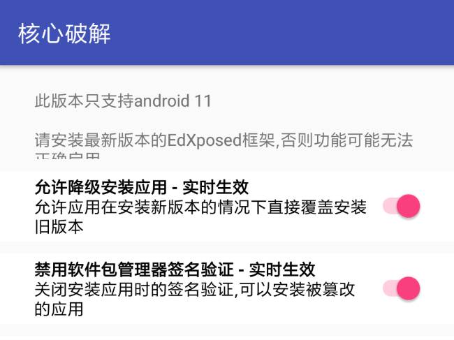 核心破解是一款提取自幸运破解器中的核心破解模块,可以实现签名不同覆盖安装的xPosed模块。