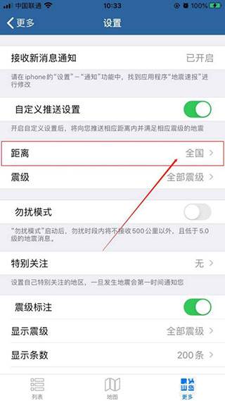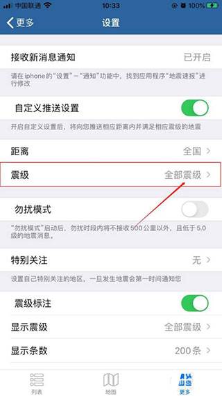 6.返回“设置”界面中,选择“震级”选项。
