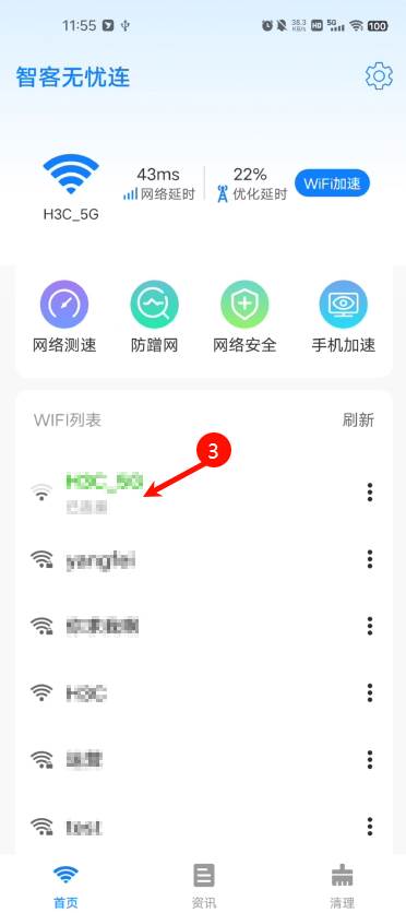 wif连接管理及手机内存清理工具,智客无忧连app官方最新版,软件集成了丰富的功能,可在手机上更加便捷的管理网络,wifi加速,网络测速,防蹭网,网络安全检测,手机加速,内存清理,最新热门资讯管理等,便捷好用易操作。