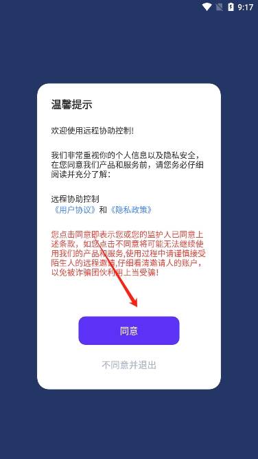 2、进入后阅读并同意远程协助控制app的用户协议