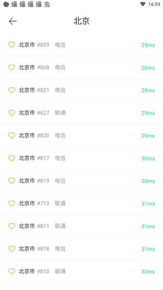 3、接下来选择一个ip,进入后就可以看到每个城市具体的线路信号状况和编号,选择一个信号较好的点击即可。