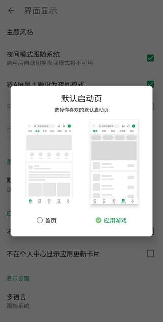 3、选择默认启动页;