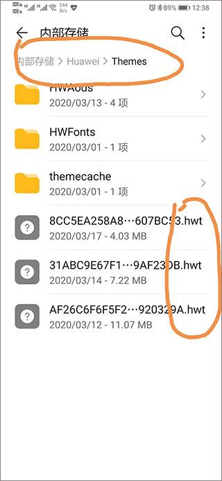 1、将从酷安下载好的文件复制(或移动)到 内部存储---Huawei---Themes文件夹中;
