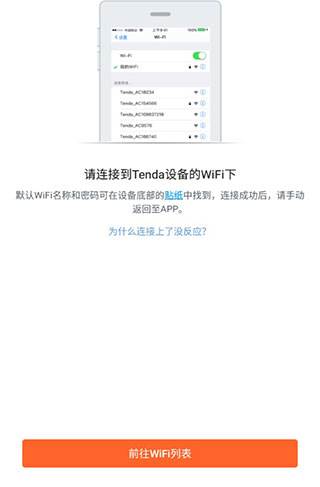 1、打开app,点击【前往wifi列表】跳转到wifi连接界面。