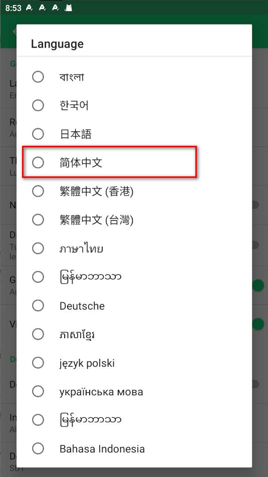 2.点击Language,在列表中找到简体中文,并选择即可