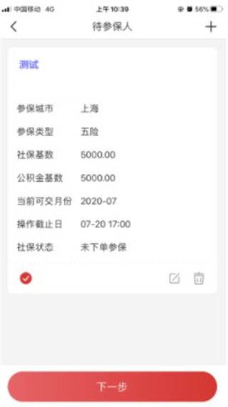 8、请逐一核对【参保人姓名】【身份证号码】【参保城市】【参保类型】【社保基数】【公积金基数】【当前可交月份】【操作截止日】;