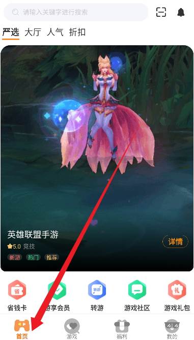 1、进入到软件首页,来到游戏大厅,这里为大家推荐了诸多严选热门游戏;