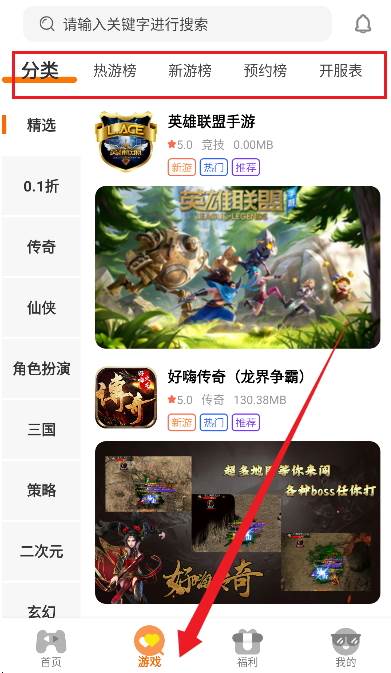 3、在【游戏】界面以分类的形式整理出了各种游戏资源,有各种维度的榜单可以去查阅;