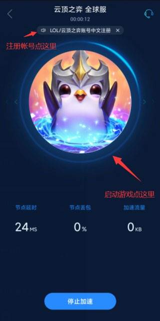 3、加速之后,点击上方“LOL/云顶之弈帐号中文注册”即可进入账号注册页面。