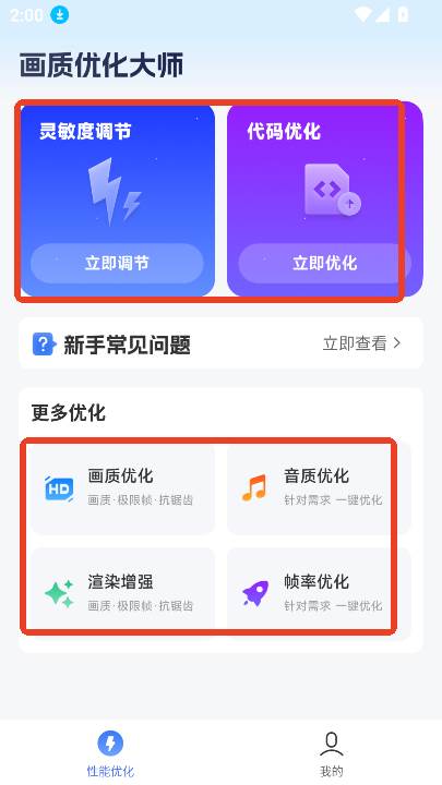 画质优化大师是一款非常好用的优化画质软件,里面功能丰富,可以进行灵敏度调节、代码优化、画质优化、印制优化、渲染增强、帧率优化,给用户提供更加清晰、细腻且流畅的视觉体验。