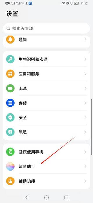 2、点击“设置”进入,找到“智慧助手”