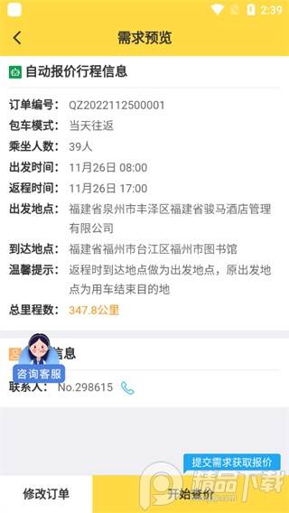 【包车快速询价】:发布用车需求,秒速获取多家车队报价。