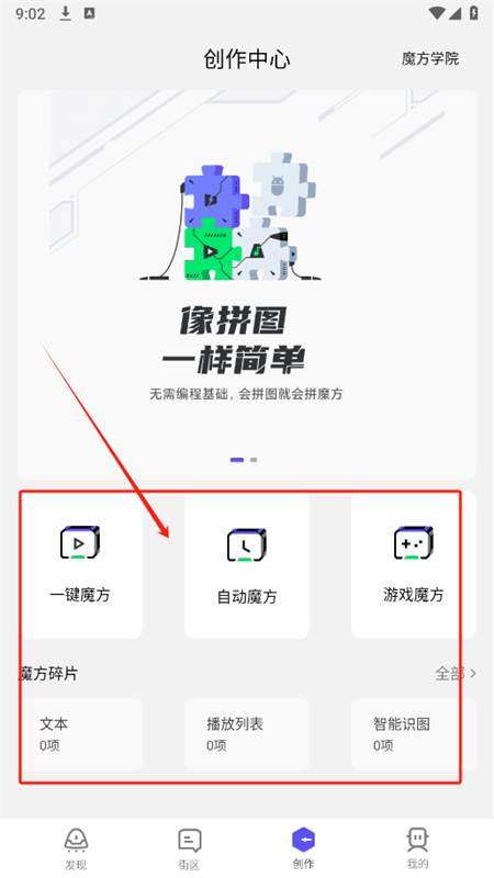 6、点击创作,这里为大家提供了全面的魔方创建功能