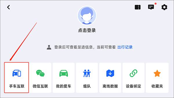 1、安装完成之后打开,点击“头像”进入到登录界面,先登录再选择“手车互连”。