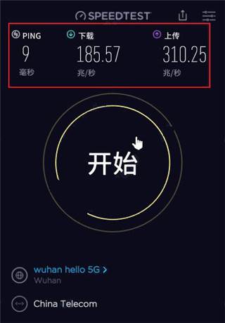 2、测试结果主要为3项:Ping 值,下载速度和上传速度。