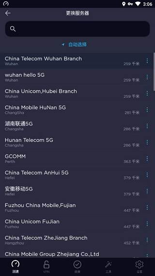 1、启动Speedtest App。Speedtest会自动选择一个离你最近的服务器。