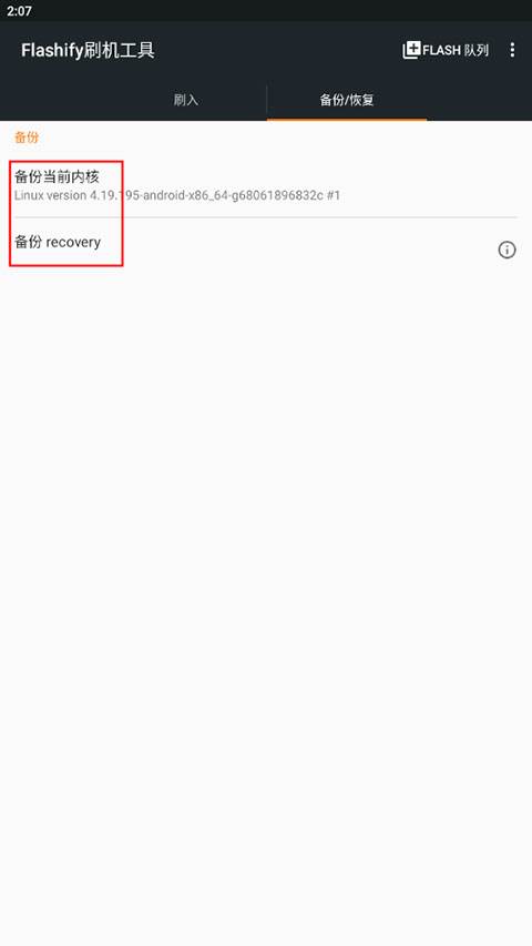 3、备份恢复可以选择“备份当前内核”或者“备份recovery”。