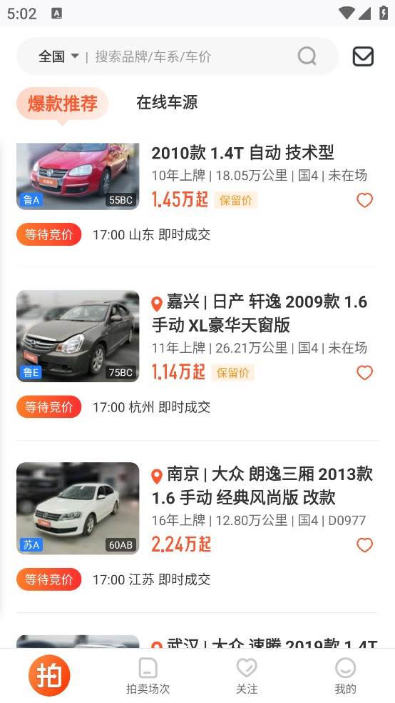 3、正式进入软件之后可以看到很多正在拍卖的爆款车型