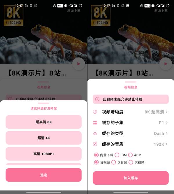用户可以通过自己的需求缓存不同格式的内容,最高支持4K(需要登录大会员账号)