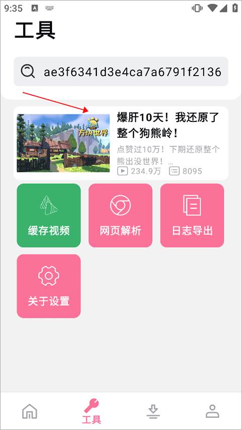 1、首先用户需要先在哔哩哔哩中将你要下载的视频链接复制过来,然后打开app将链接粘贴在工具页面上的搜索框中