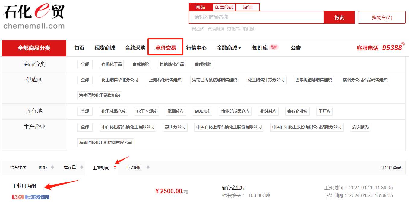 点击“竞价交易”,查看竞价交易按照产品大类在售的更多竞价产品;点击上架时间上方,则最新上架的数据显示最前方;选择对应的竞价商品,点击进入详情。