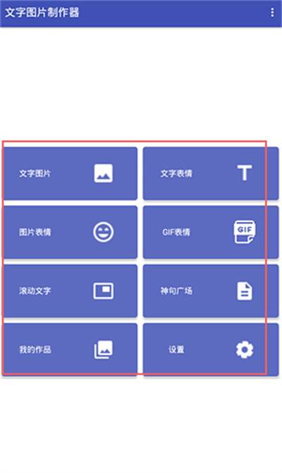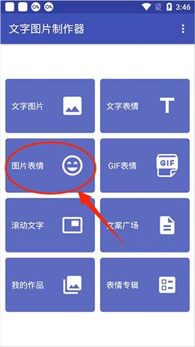 1.在软件主界面,你可以看到有文字图片、文字表情、图片表情、GIF表情、滚动文字等。