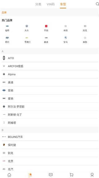 1、车型配件一键查询,支持分类查询、VIN查询、车型查询