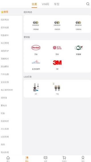 2、还有各种配件分类,非常的详细甚至精确到贴膜、润滑油、点火系统等