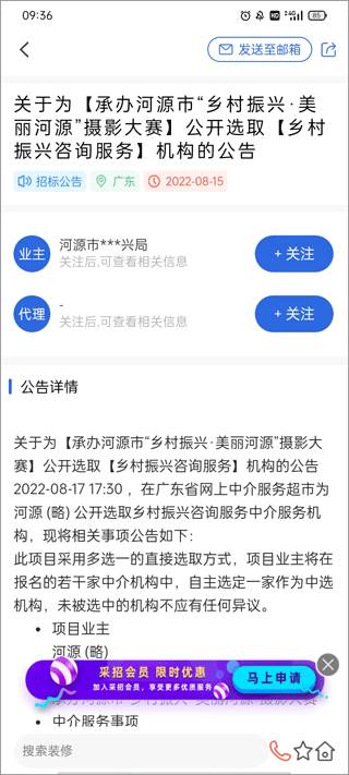 您想要关注的招标项目用手机都能找到。