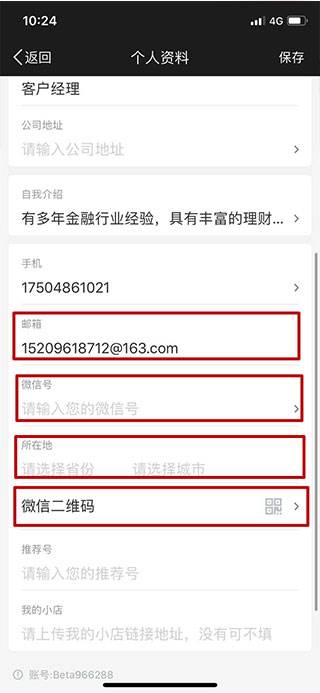第四步:点击上面的头像框设置头像,这个头像将是个人名片的头像,随后输入下面各类信息,姓名、单位、职位、自我介绍、联系方式等信息,方便客户及时联系我们;