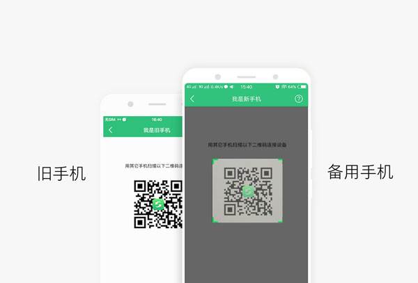 3、用备用手机扫码旧手机的二维码,进行连接。