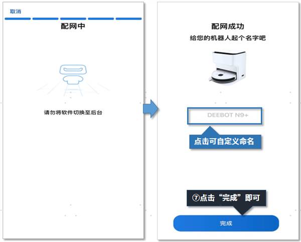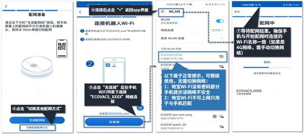 b:点击“切换其它配网方式”手动输入SN码后四位后点击“下一步”后app界面会提示“Ecovacshome”想要加入无线局域网”Ecovacs_xxx”吗?选择加入后机器会自动完成配网。