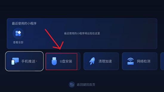 4、进入后你会在这里面看到你插入到电视上的U盘信息,找到自己需要安装的APK安装包安装即可。(这里本站因为是做演示,没有插入U盘,所以显示未检测到U盘)